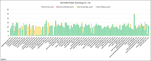 - Blocking of independent New Media. 112 out of 2,130 websites were detected 1,473 confirmed blocking counts through 6 local vantages under DNS level interference and HTTP level interference. There were 11 out of 31 websites’ categories from OONI were found as confirmed blocking. Among 11 categories, News Media was experiential as the highest confirmed blocking measurement, following to pornography to the second largest blocking counts. Interestingly, within 117 government websites, OONI detects 15 websites were blocked from 2 vantage points of 2 ISPs.