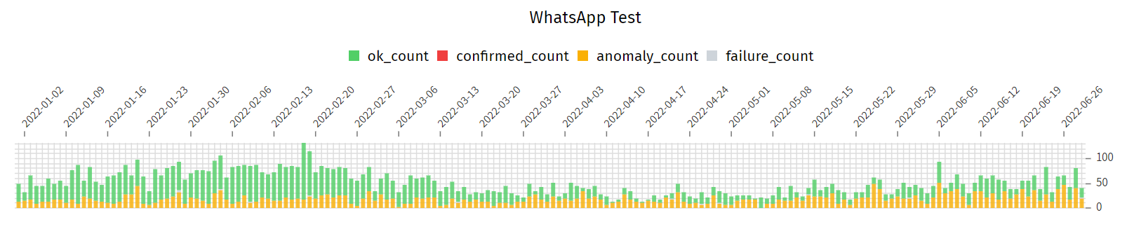 During the first half-year of 2022, 753,018 OONI measurements were collected from 2,130 websites through 37 vantage points in Myanmar. From this total, it was seen that 88.8% (668,881) were OK, 9.9% (74,711) were anomalies, 1.1% (7,953) were failed measurements and 0.2% (1,473) were confirmed blockings.