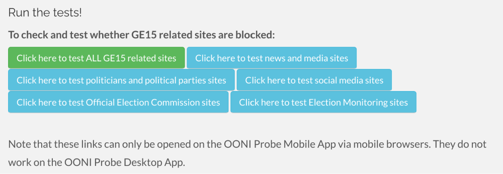Over the past 7 years, we have seen community members use OONI Run leading up to and during elections, or in response to emergent new blocks during protests or other political events. Sinar Project, for example, used OONI Run to coordinate an OONI censorship measurement campaign in Malaysia to encourage the testing of election-related websites during the country’s 2022 general election.