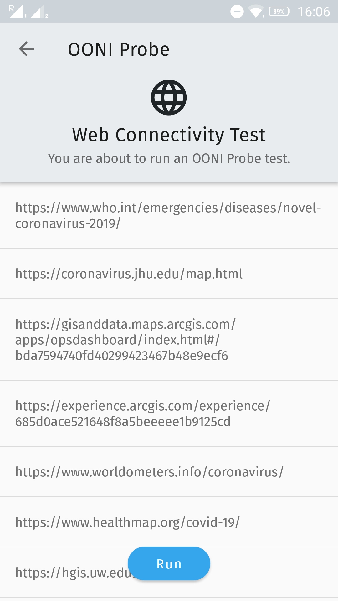 COVID-19 (25 URLs)- Open the button with your OONI Probe mobile app (not with a web browser).